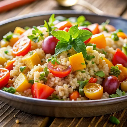 ताज़े अवोकेडो और रंग-बिरंगी सब्जियों से भरे इस क्विनोआ सलाद में स्वस्थ और सजीव स्वाद का आनंद लें।